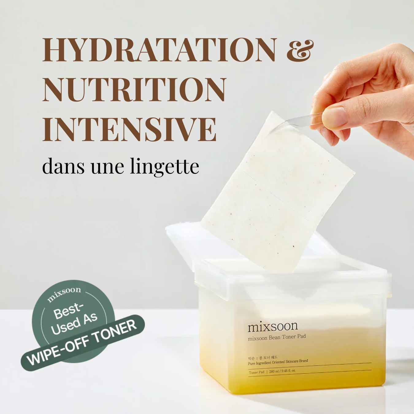 Les Bean Toner Pads Mixsoon sont des tampons toniques hydratants infusés d’ingrédients de haricots riches en protéines, conçus pour nourrir la peau en profondeur tout en améliorant sa texture.