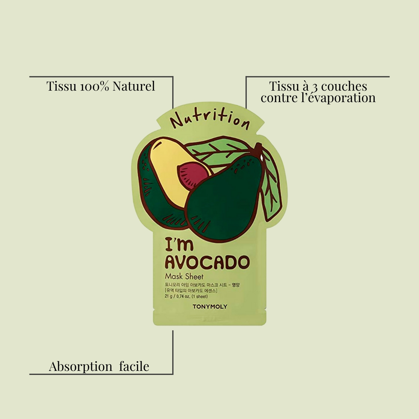 Plongez votre peau dans une vague de nutrition intense avec le masque en tissu I’m REAL à l’Avocat de Tony Moly.