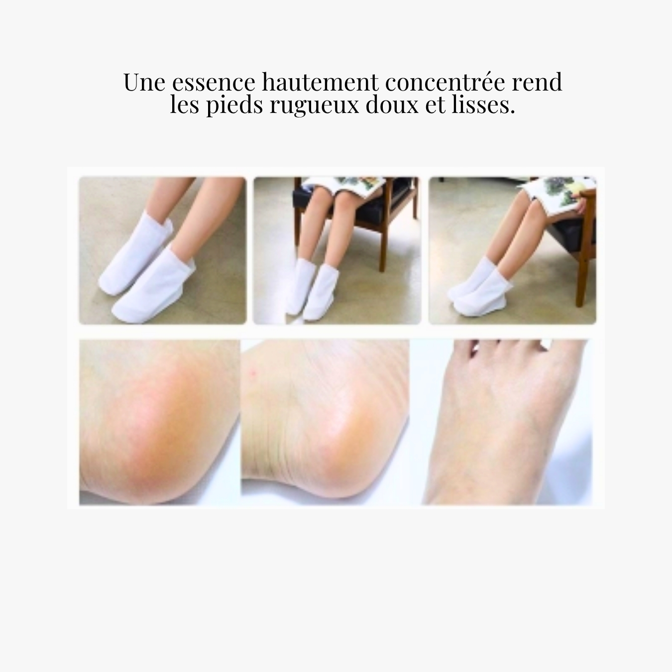 Ce masque chaussette innovant est imprégné d’une essence sèche concentrée qui se transforme en soin intensif au contact de la chaleur de la peau. Enrichi en urée, aloe vera et extraits botaniques, il hydrate en profondeur, adoucit les talons rugueux et redonne confort et souplesse aux pieds secs.