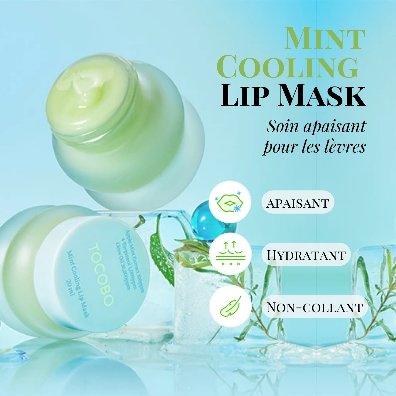 Le Mint Cooling Lip Mask de Tocobo offre un soulagement instantané aux lèvres sèches et irritées grâce à sa formule hydratante et son effet frais. C’est un masque lèvres rafraîchissant qui hydrate, apaise et revitalise instantanément.