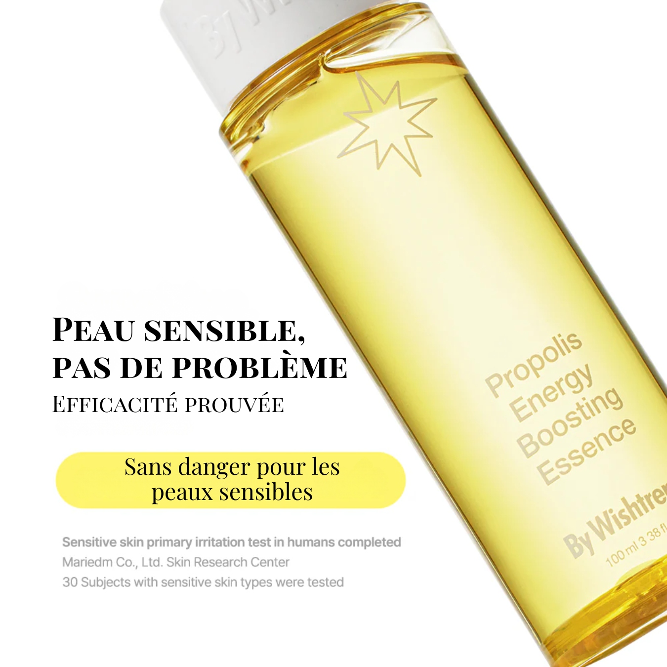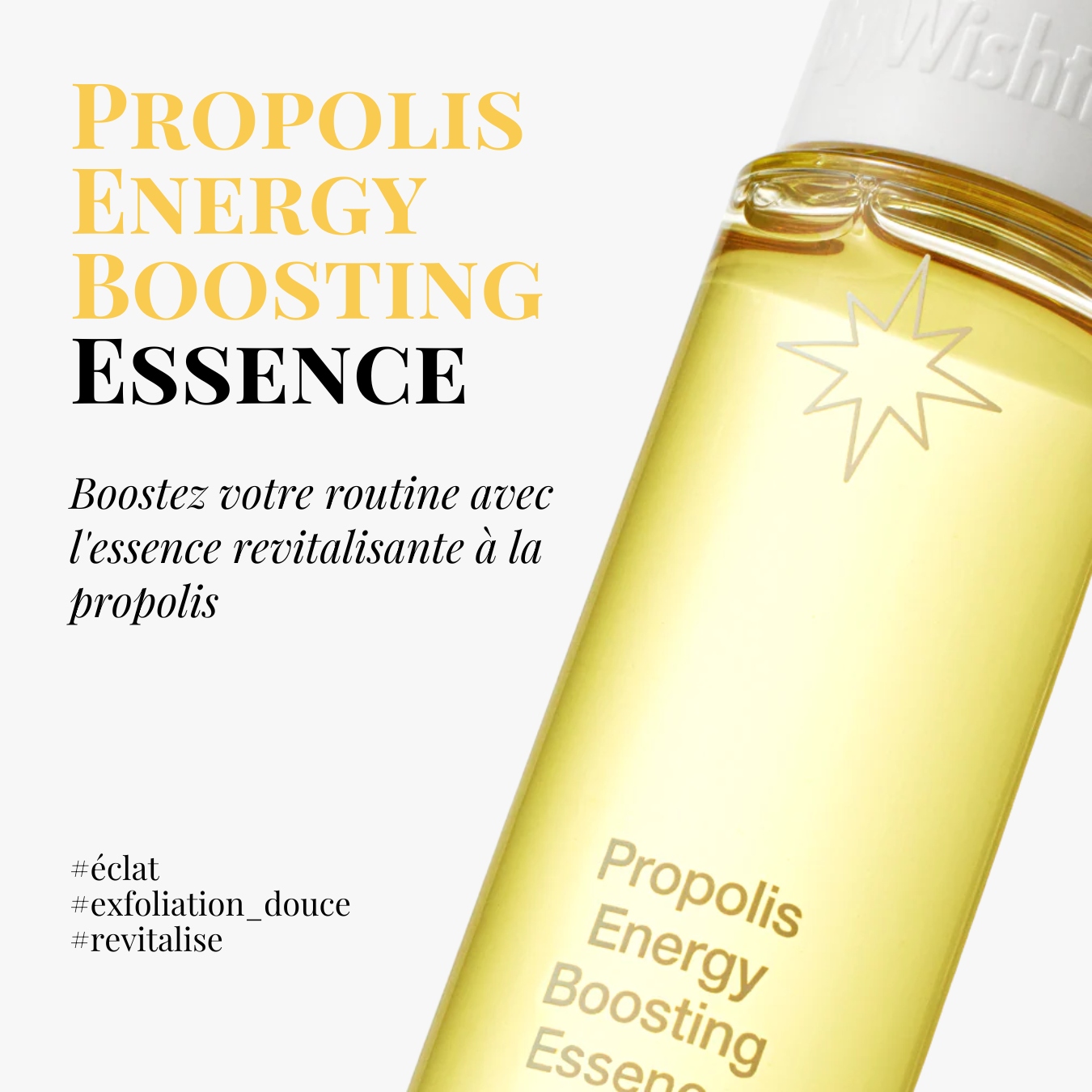 La Propolis Energy Boosting Essence By Wishtrend est une essence hydratante et revitalisante conçue pour renforcer la peau, améliorer l’éclat et protéger des agressions extérieures. Elle aide à apaiser les peaux stressées, à maintenir une bonne hydratation et à retrouver un teint plus frais et lumineux au quotidien.