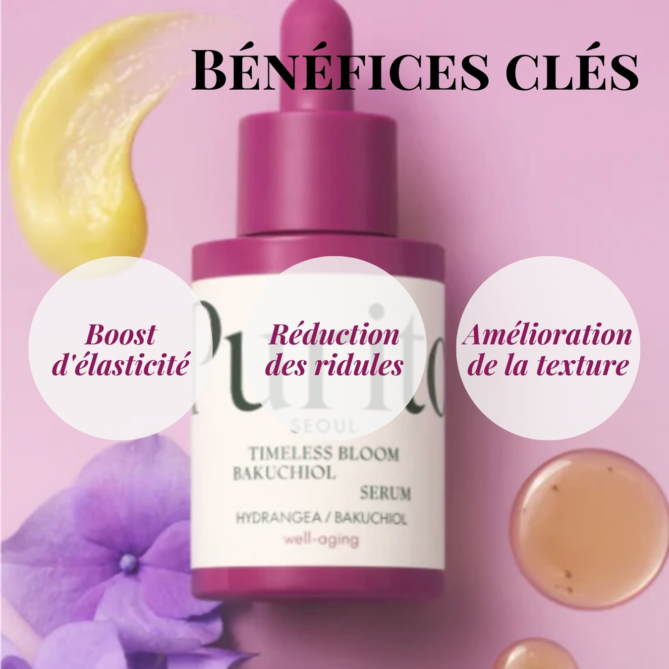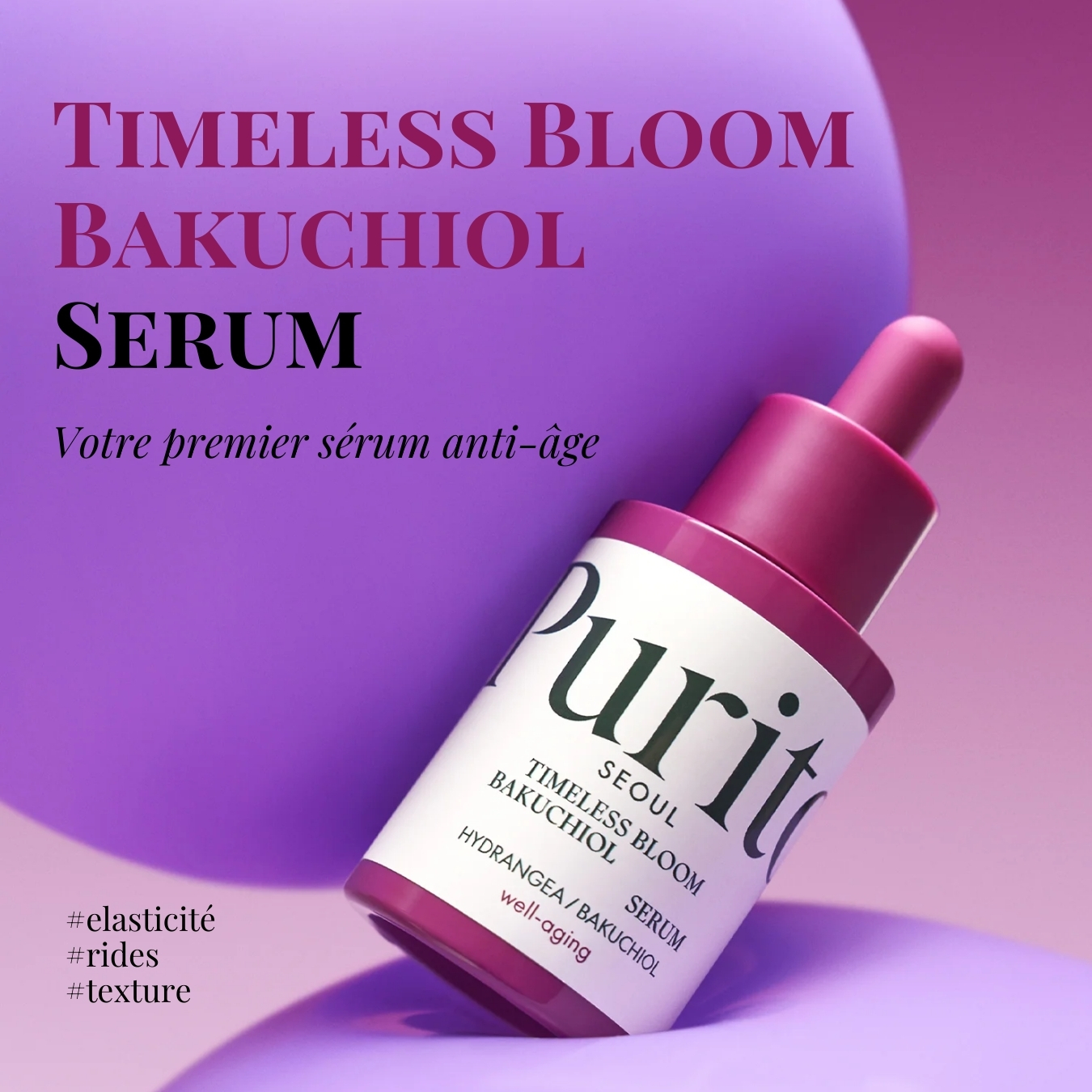 Le Timeless Bloom Bakuchiol Serum de Purito est un sérum anti-âge innovant à base de bakuchiol, une alternative douce au rétinol qui aide à lisser les ridules, améliorer la texture cutanée et stimuler le renouvellement cellulaire sans provoquer d’irritation. Ce sérum léger et fluide pénètre rapidement, laissant la peau visiblement plus lisse, souple et lumineuse.