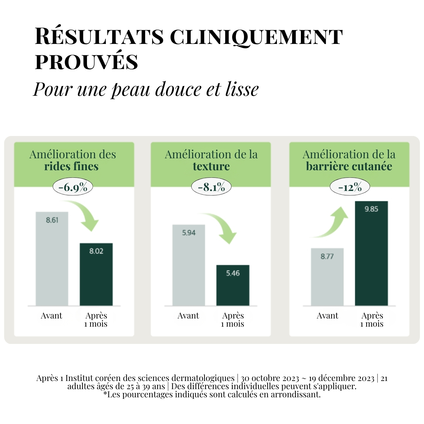 Sa formule associe des agents hydratants et apaisants pour renforcer la barrière cutanée tout en offrant un effet anti-âge global : réduction de l’apparence des rides, amélioration de l’élasticité et un teint plus uniforme.