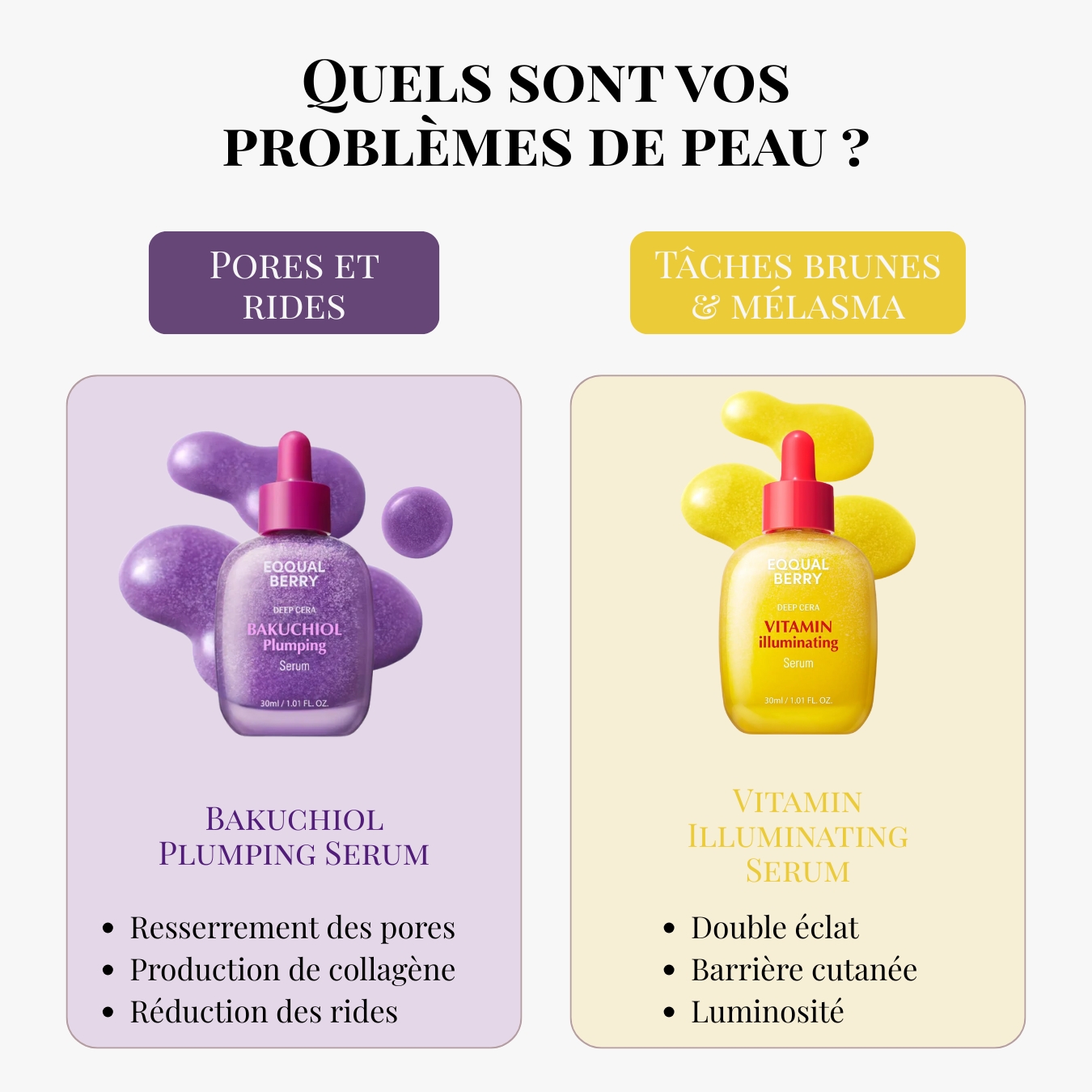 | Problème de peau | Eclat et uniformité du teint, Tâches d'hyperpigmentation |