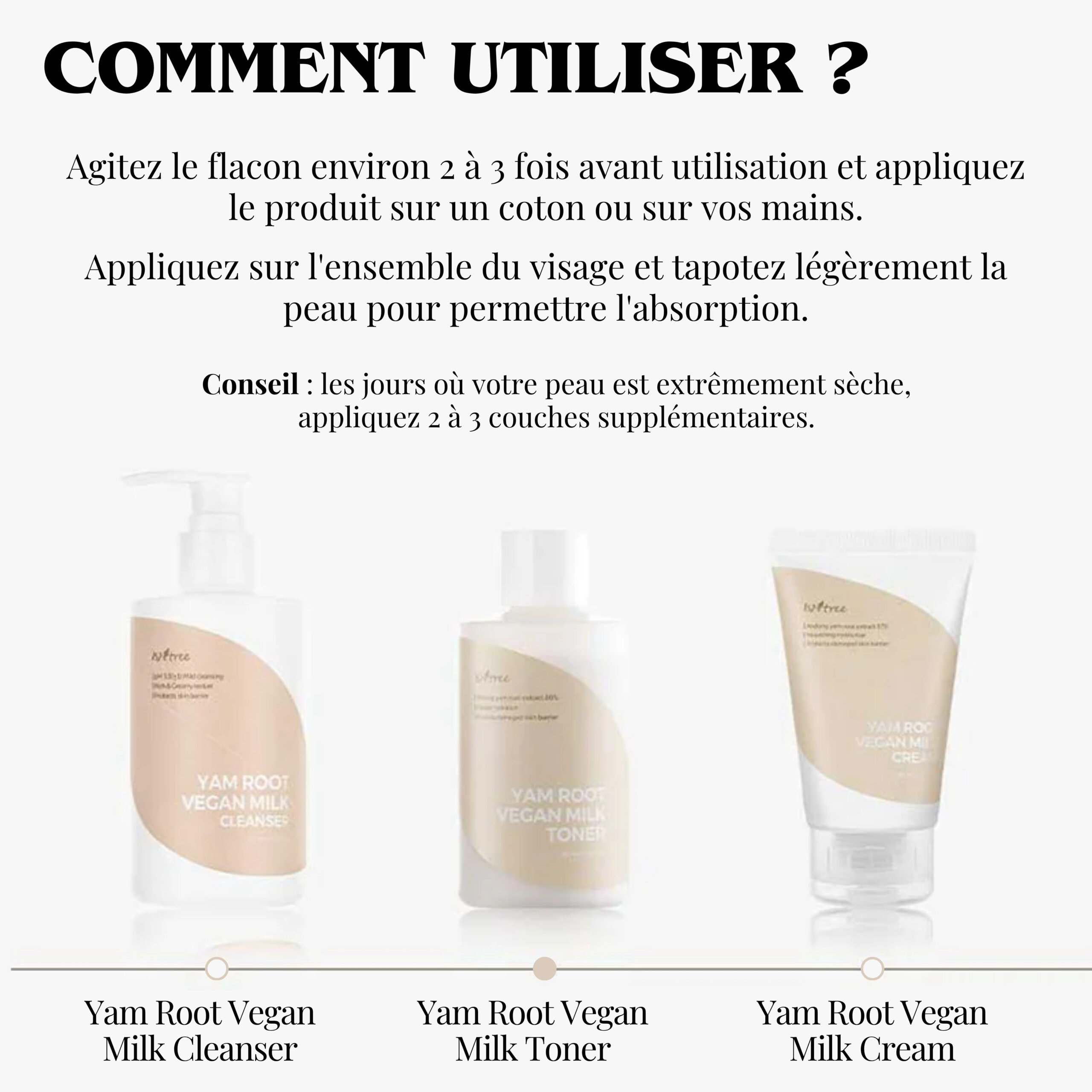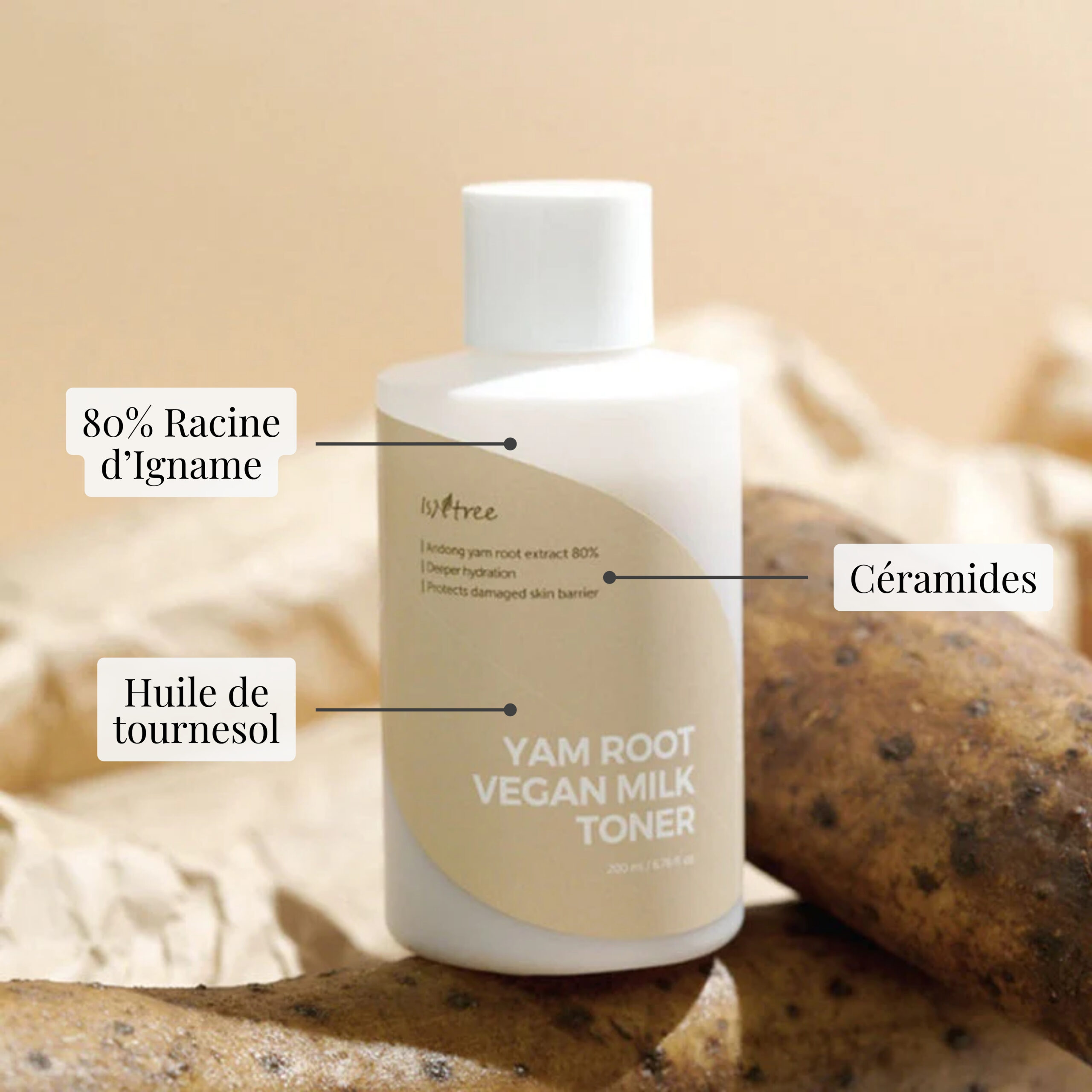 Formulé à 80 % d’extrait de racine d’igname d’Andong, il hydrate en profondeur et nourrit la peau tout en améliorant sa texture. Sa texture lactée légère enveloppe la peau, renforce la barrière cutanée grâce à un complexe lipidique (céramide NP, cholestérol…) et enveloppe l’épiderme d’un confort ultime.